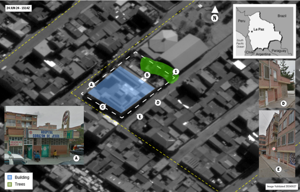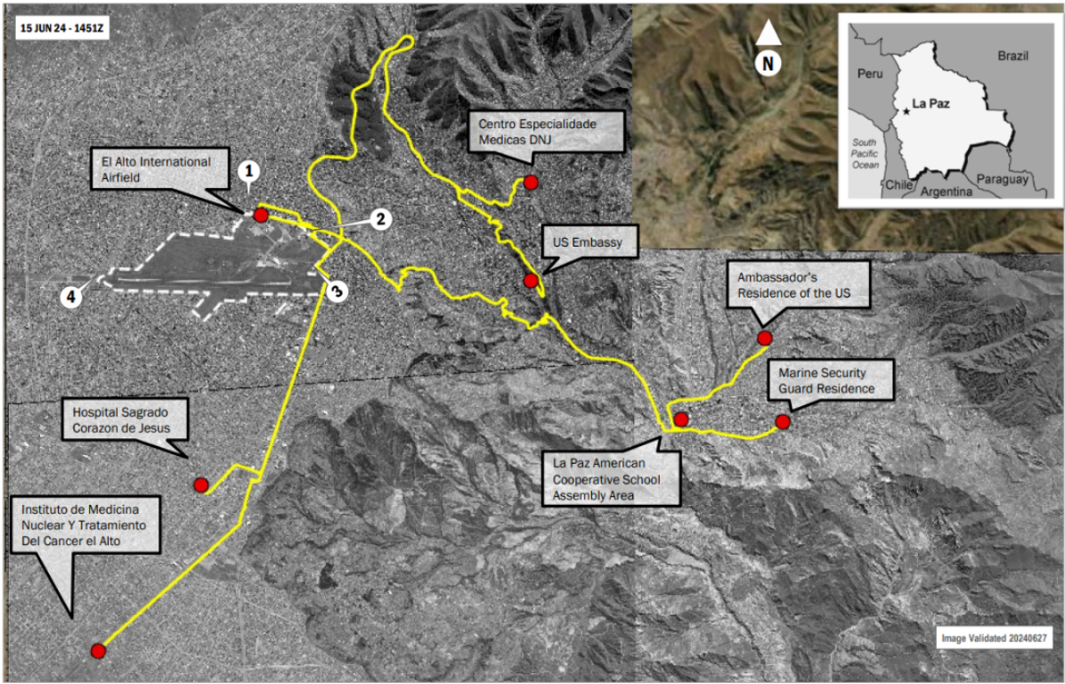 Goal: determine optimal helicopter landing zones, details on critical buildings (hospitals, embassies, schools), and directions to nearest airport in support of evacuation efforts.