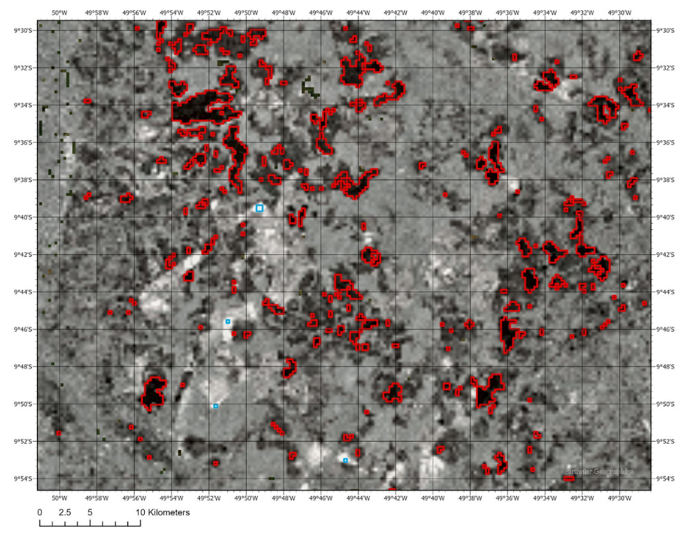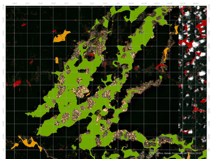 PREDICTION POLYGONS FOR AREAS OF MINING ACTIVITY CHANGE, COLORIZED BY CONFIDENCE RATING