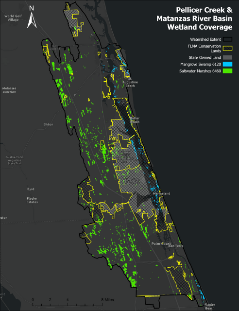 There are 8,234 acres of Mangrove Swamp and Saltwater Marshes in Pellecier Creek & Matanzas River Basin.