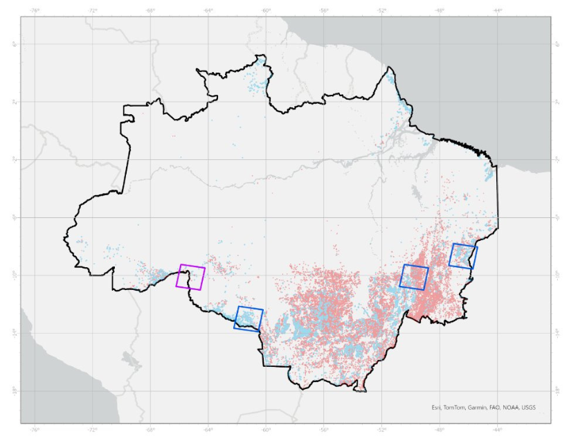 Identify and quantify forest loss and growth throughout sections of the Amazon Rainforest from October 2021 – September 2023