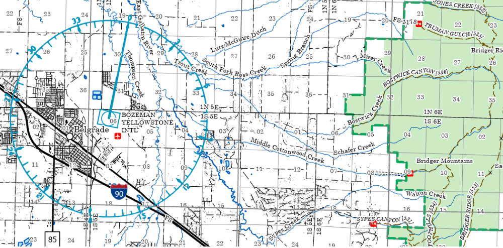 Create large wall map (12×8 ft) to be used for wildfire response and planning by the Billings Interagency Task Force, a joint effort between the US Forest Service and Bureau of Land Management