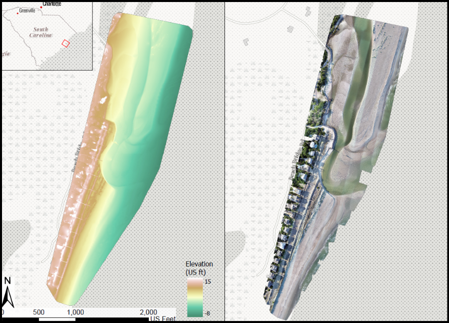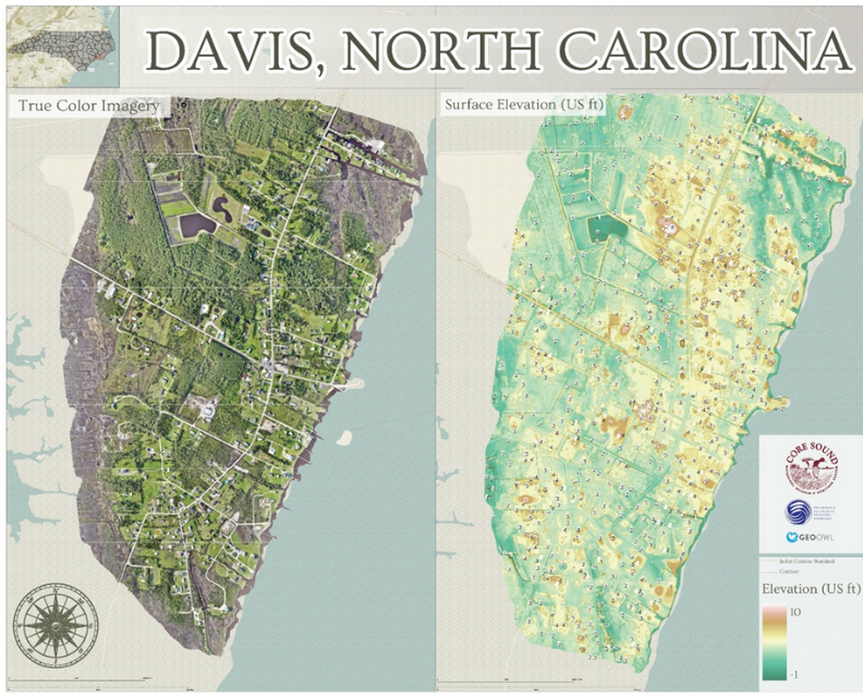 Create large educational display map of ultra-high resolution imagery and elevation in a coastal North Carolina Community
