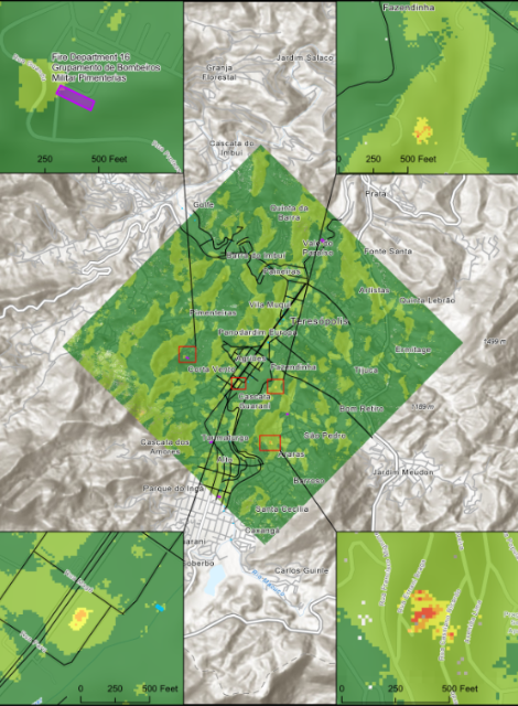 Identify areas of potential flooding and associated critical infrastructure in a region of Brazil experiencing extended